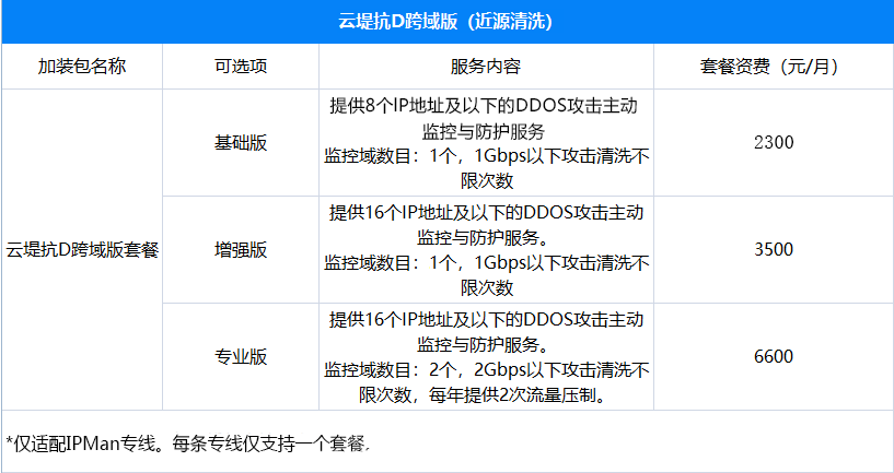 部署在核心网络,能够有效牵引和清洗攻击流量。资费灵活,客户可以根据自身情况灵活配置,确保自身关键业务正常运转。