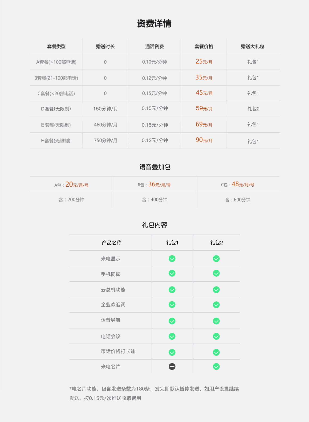 | 电话数量 | >100部 | 21-100部 | ≤20部 | 不限 | 不限 |