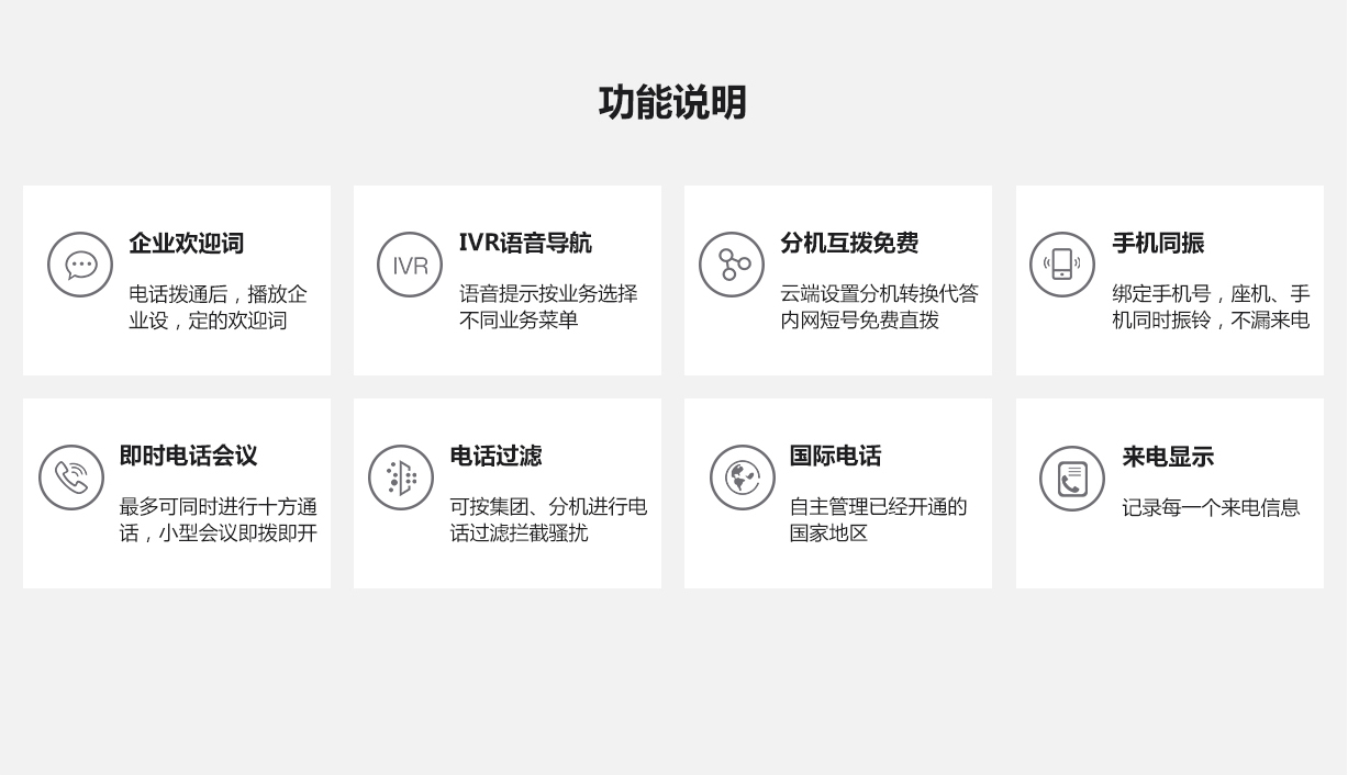 国展中心固话全部采用商云通IP电话接入的方式,电信局制定灵活的业务受理开通流程,所有的IP话机国展中心可自助配置调整,短时间完成部署